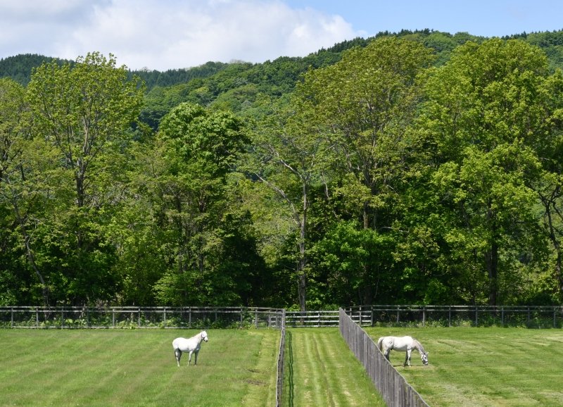 この日は牧柵沿いの掃除刈りをしていたので、刈りたての青草が夕方まで時間無制限の食べ放題😋