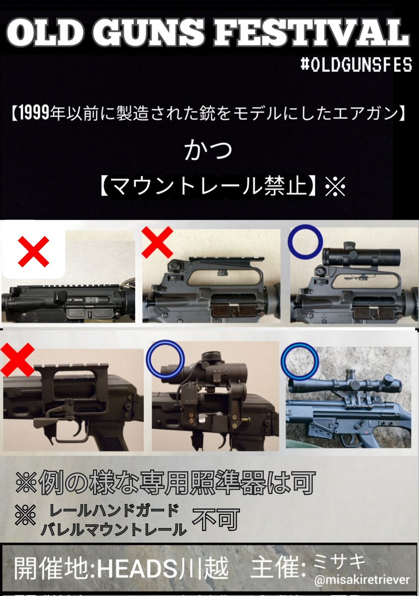 「レールの付いていない、昔の銃でサバゲーをしよう!」 第一回【OLD GUNS FESTIVAL】開催! 2023年2月5日㈰ 埼玉県HEADS川越