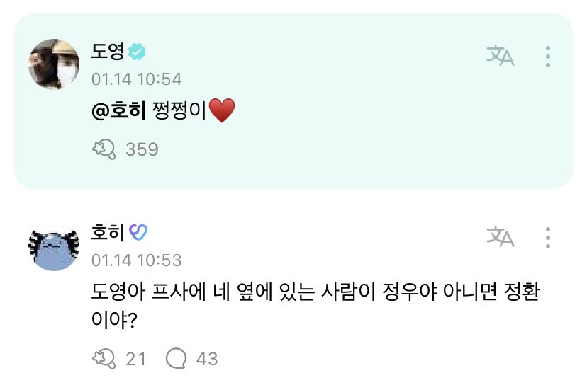 OP : doyoung, di foto profil yang di sebelah kamu itu jeongwoo atau junghwan?