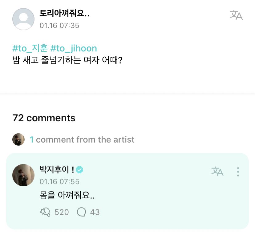 OP : kak jihoon, aku tuh suka banget parfum. kamu ada rekomendasi gak?? aku suka yang wanginya vanilla gitu…