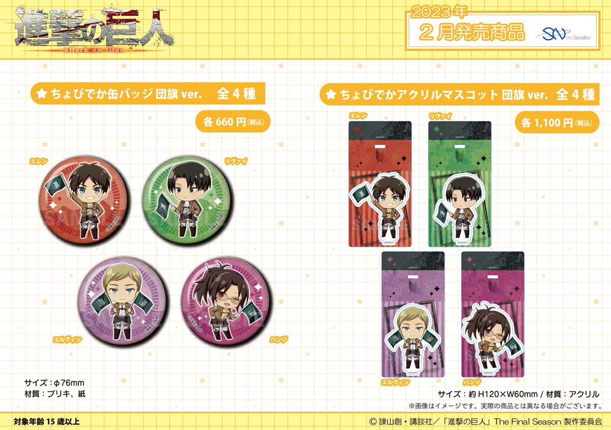 TVアニメ『#進撃の巨人』より、団旗テーマの弊社描き起こしミニキャラを使用した新作グッズが登場🚩