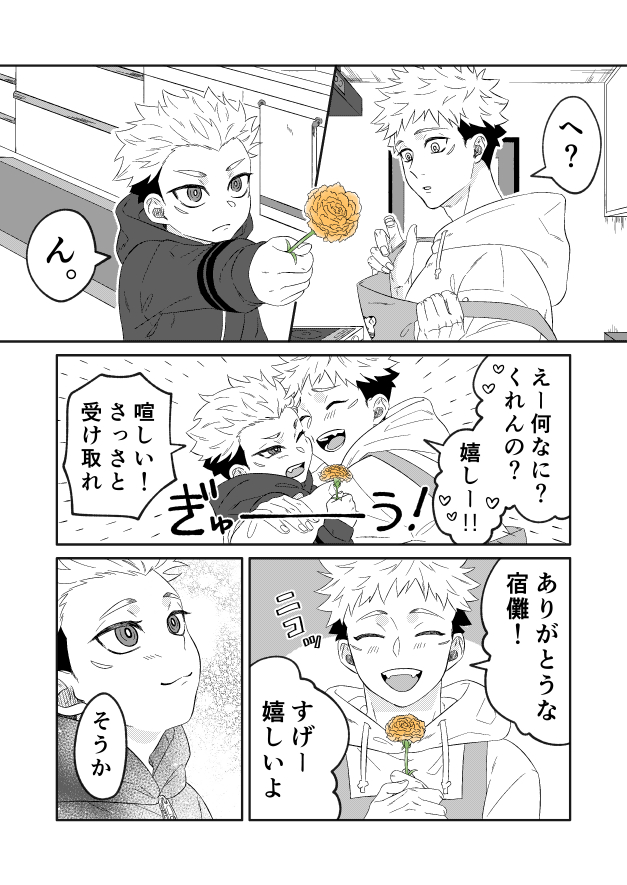 兄弟パロ宿虎 途中でカラーじゃないと意味がないと気付き花だけ塗った。かぁーねぇーしょんダヨ