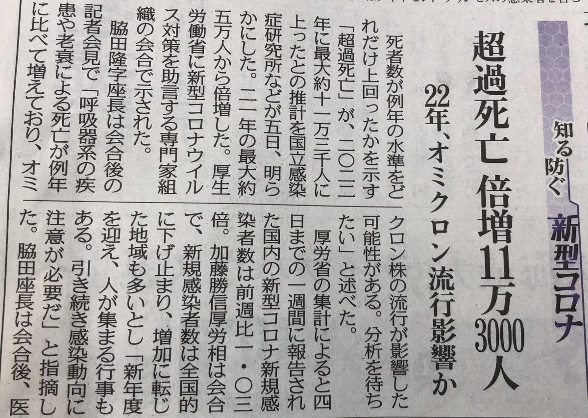 オミクロン株の影響で超過死が倍増って意味不明だし数字もごまかしてるよ。
