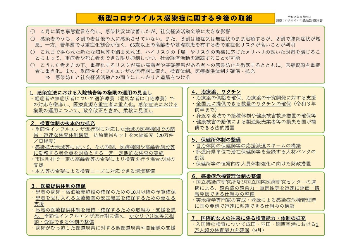 分科会で、#新型コロナウイルス感染症 の感染症法上の位置付け(#指定感染症(2類相当))の問題提起がありました。これまでも医療関係者から提起されており、私も問題意識を共有しています。今後、厚生労働省において、メリット・デメリットなどを分析し、速やかに検討を行うことになります。