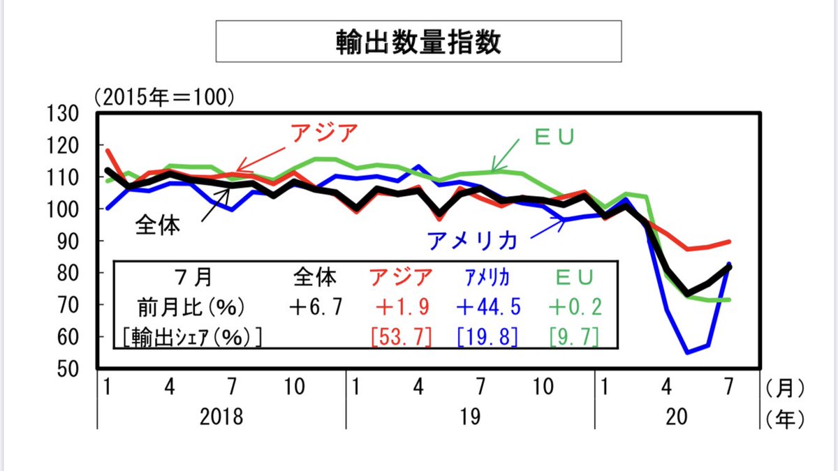 本日、8月の月例経済報告を公表しました。景気の現状については、先月の判断を維持していますが、個人消費は、緊急事態宣言下の4、5月を底に6月は増加に転じ、持ち直しの動きが見られます。輸出も、主要貿易相手国の景況感が改善する中で、持ち直しているなど、一部に明るい動きが見られます。