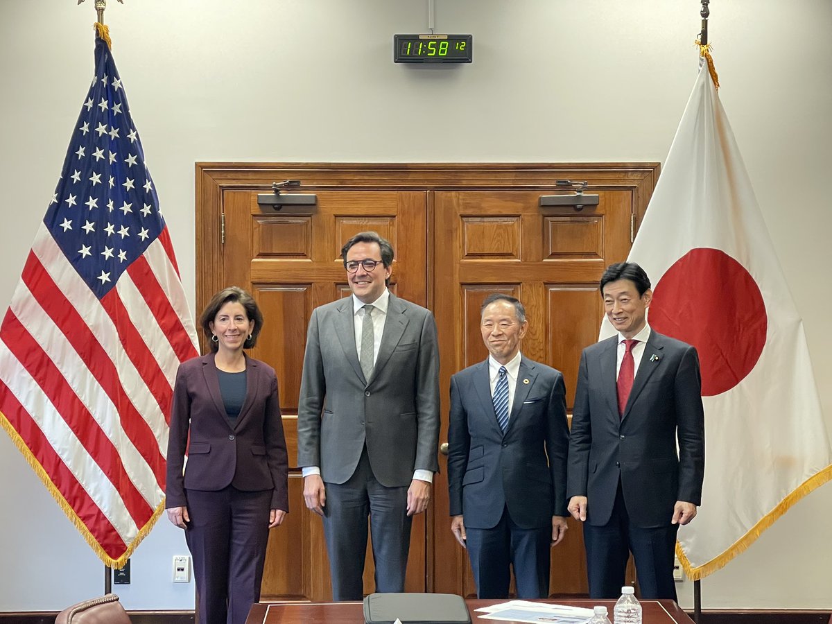 レモンド商務長官とは次世代半導体の早期実現に向けた日米連携の一層の強化で一致。日本のRapidus社と米国IBM社から協力締結後の取組を伺いました。半導体に加え、バイオ・量子・AIに協力を拡大することでも一致。本年日本で開催予定の第二回経済版2+2も早期に実施し幅広い分野の成果につなげていく。 twitter.com/nhk_news/statu…