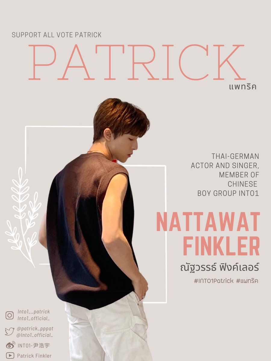 I vote for #Patrick Nattawat Finkler, Thai-German actor and singer of Chinese boy group INTO1 @into1_official_ for 100 most handsome men of 2021 #TBworld2021