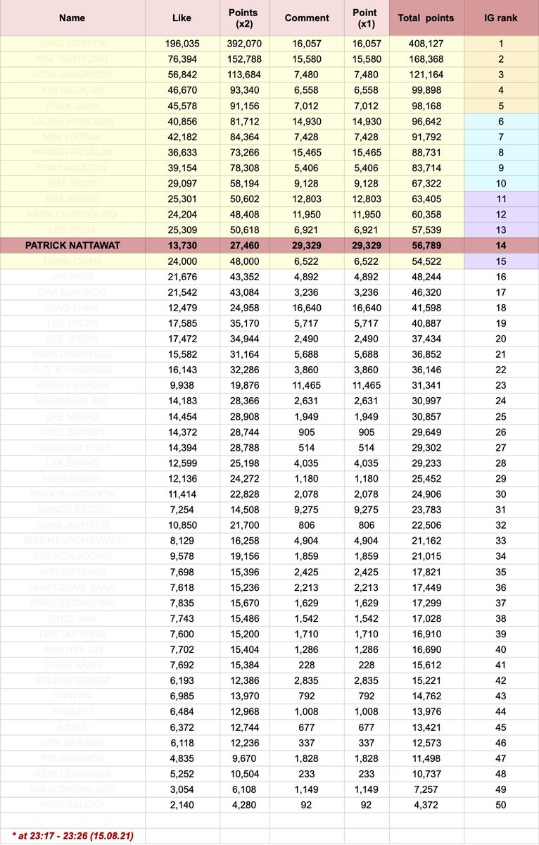 ⚠️คำนวณจาก like+comment ใน IG เท่านั้น twitter.com/Vote_ForPT/sta…