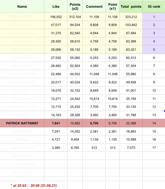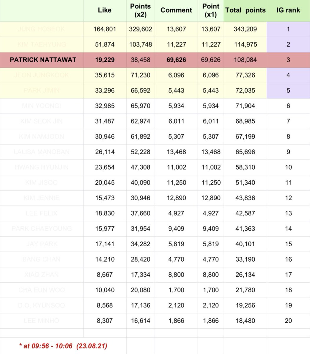 **ตารางคะแนนคำนวณจากยอด comment + like ใน IG เท่านั้น ไม่ใช่คะแนนทางการ
