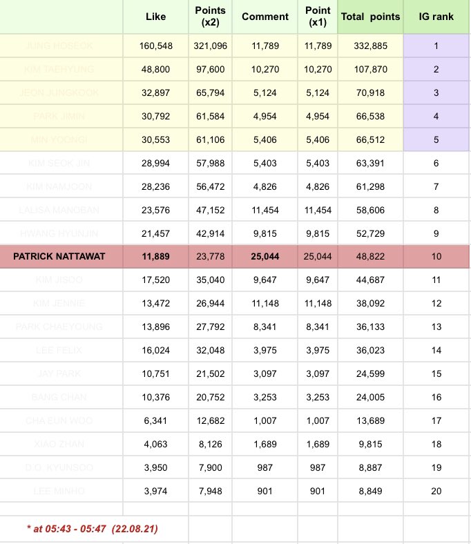 ⚠️คะแนนคำนวณจาก like+comment ใน IG เท่านั้น (05:47 น.)