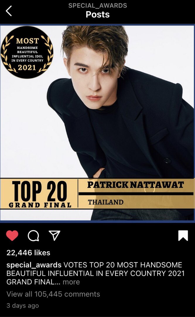 📣 อัพเดทคะแนน IG รายการ Special_awards แพทริคอยู่ที่อันดับ 2 ค่ะ 🔥