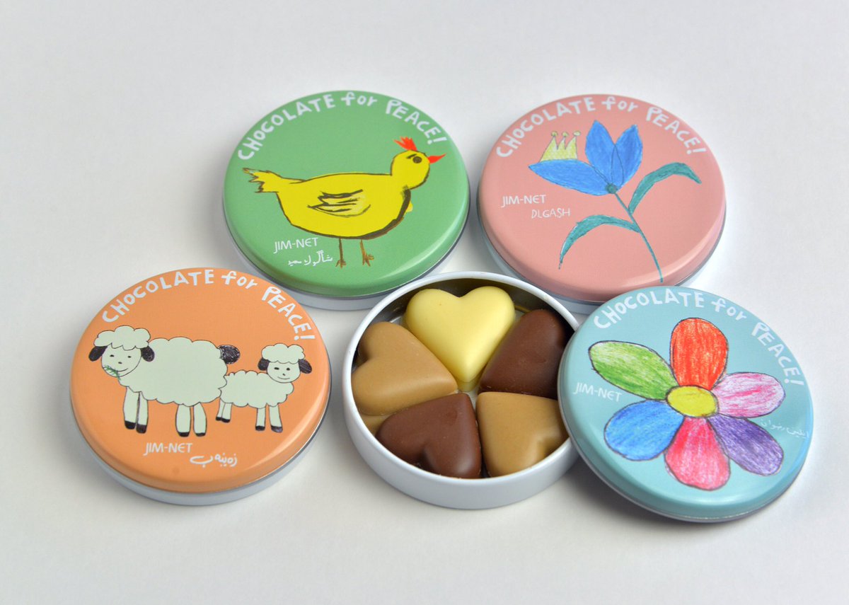 かわいくて美味しい、イラク・シリア・福島の子供達の支援になるチョコです🎁1口2200円ご寄付いただいた方へ4缶セットでお届けしています。