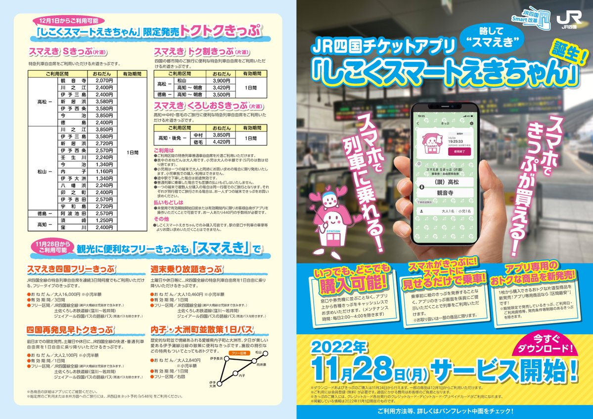 チケットアプリ「しこくスマートえきちゃん」のサービス開始日が決まりました!👏👏
