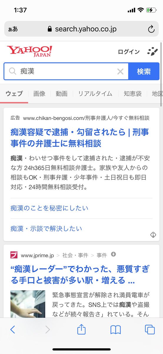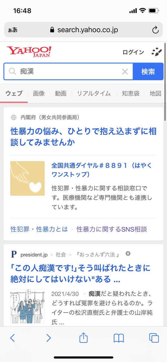 【🌷Yahoo!の検索結果に変化が🌷】 「痴漢」と検索したときの検索結果が、加害者弁護士の広告やニュース記事から内閣府のサイトが表示されるようになりました!! ←3月25日時点 6月8日時点→