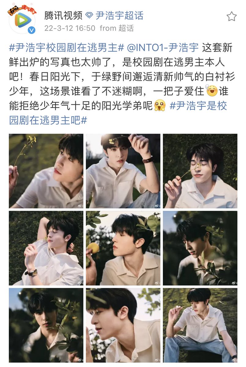 แท็กที่tencent ตั้งให้น้องก็คือ ☺️#.YinHaoyuพระเอกที่กำลังวิ่งหนีอยู่ในซี่รีย์ INTO1 YinHaoyu ชุดที่พึ่งปล่อยออกมา หล่อเกินไปแล้ว คือพระเอกที่กำลังวิ่งหนีอยู่ในรั้วโรงเรียนหรือเปล่า แสงแดดในฤดูใบไม้ผลิ ท่ามกลางสนามหญ้าสีเขียว