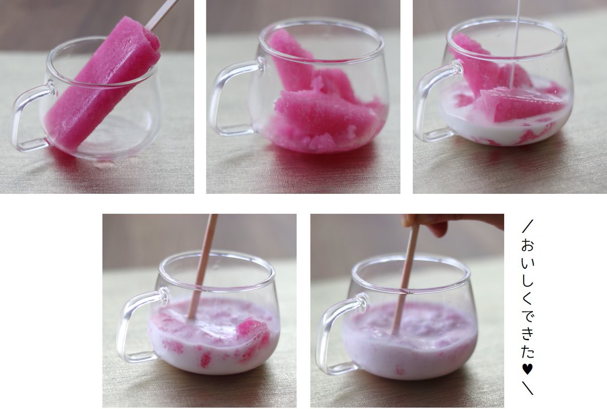 これだけで、シャリシャリ冷たくて美味しいいちごミルクの完成です!
