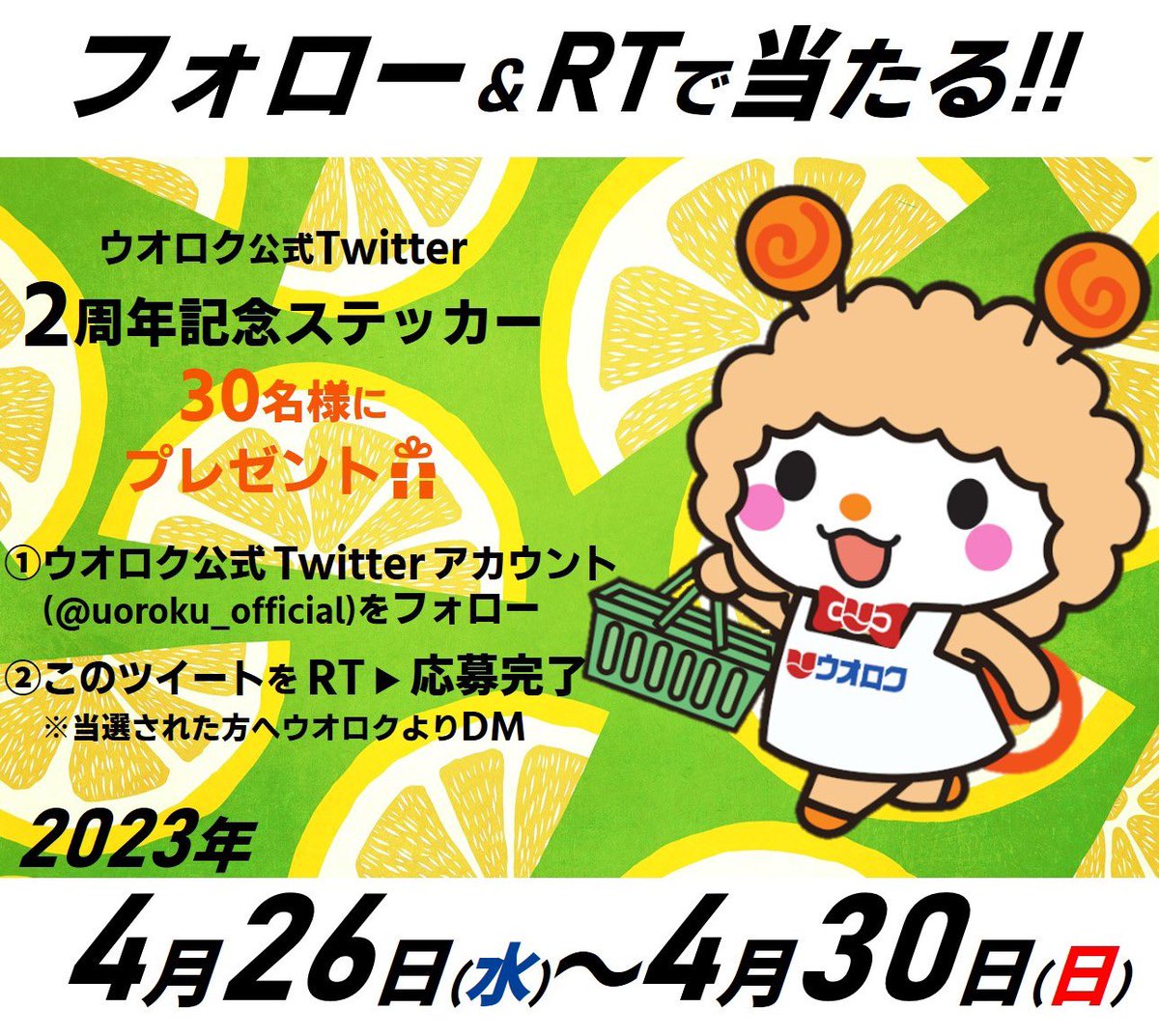 ウオロク公式キャラクター"ウオたん"の特製ステッカープレゼントキャンペーン🎁