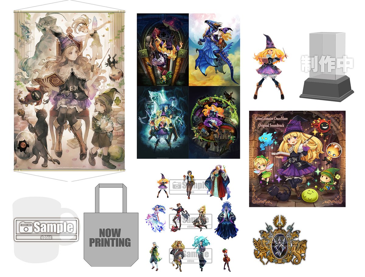 ヴァニラウェア開発『グリムグリモア OnceMore』発売決定!DXパックの予約を開始しました。ヴァニラウェア描き下ろしタペストリーなど豪華グッズが付属。3Dクリスタル付きセットもご用意しました。さらにベイシスケイプ制作のオリジナルサントラもエビテン専売で同時発売!