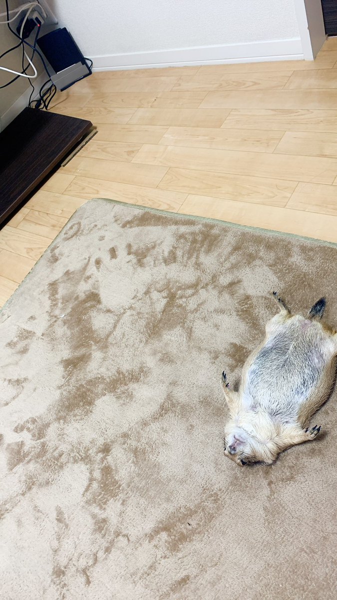切株クッションの上で力尽きるこゆき。 しかもシケシケ😫