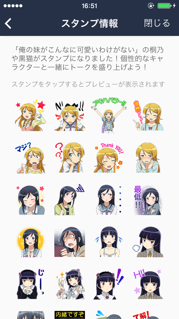 「俺の妹」LINEスタンプが本日1月29日登場!桐乃、黒猫などおなじみのキャラクターをLINEのスタンプとして使えます!スマホからのダウンロードは