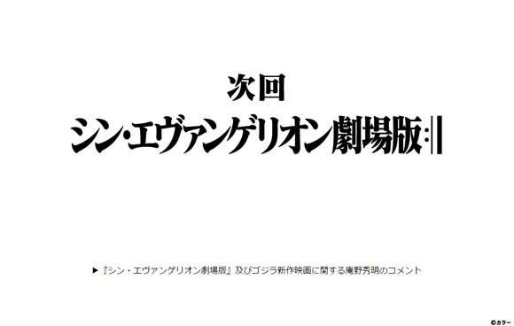 エヴァンゲリオン公式サイト更新!!「シン・エヴァンゲリオン劇場版」仕様に変更される
