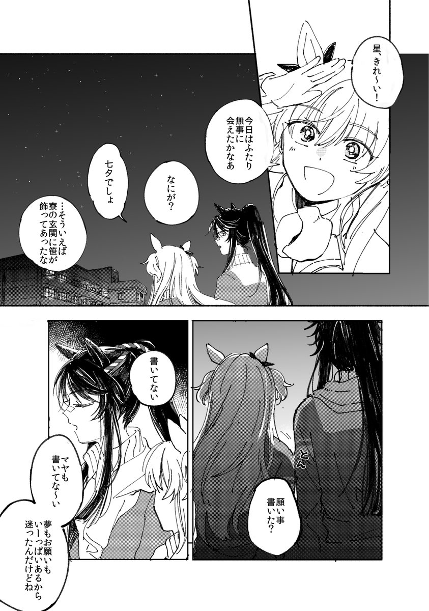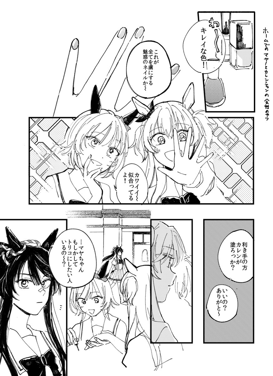 8月か9月のウマオンリー合わせでマヤブラ本出せたらな~って悩んでる・・・マヤブラしつつウェディング勝負服ゲットしてちゃんこ鍋パーティして勝負服汚してナリブ先輩に勝負服を見せる話がよみたいので描きたい感じ!