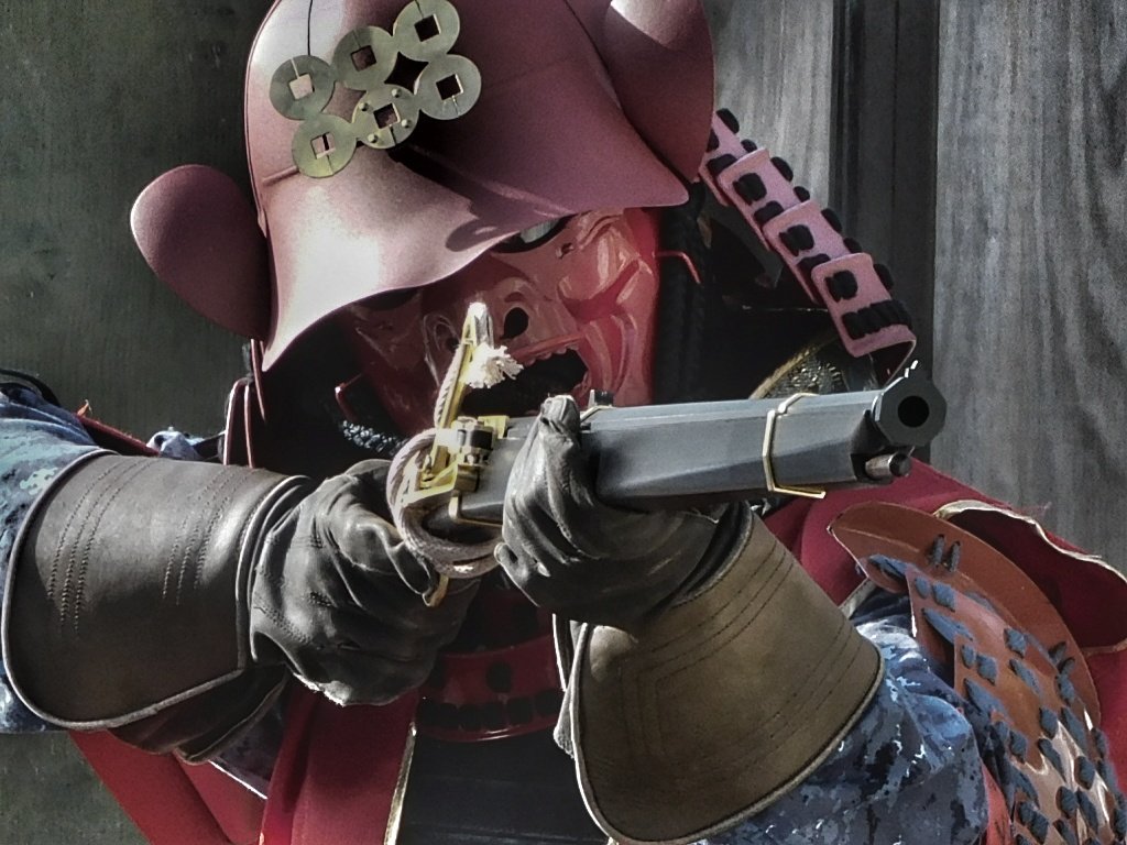戦国、昭和、平成の武器を使う武者です。