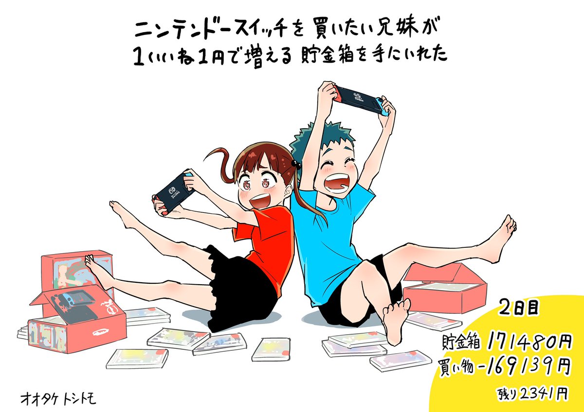 「ニンテンドースイッチを買いたい兄妹が1いいね1円で増える貯金箱を手にいれた」