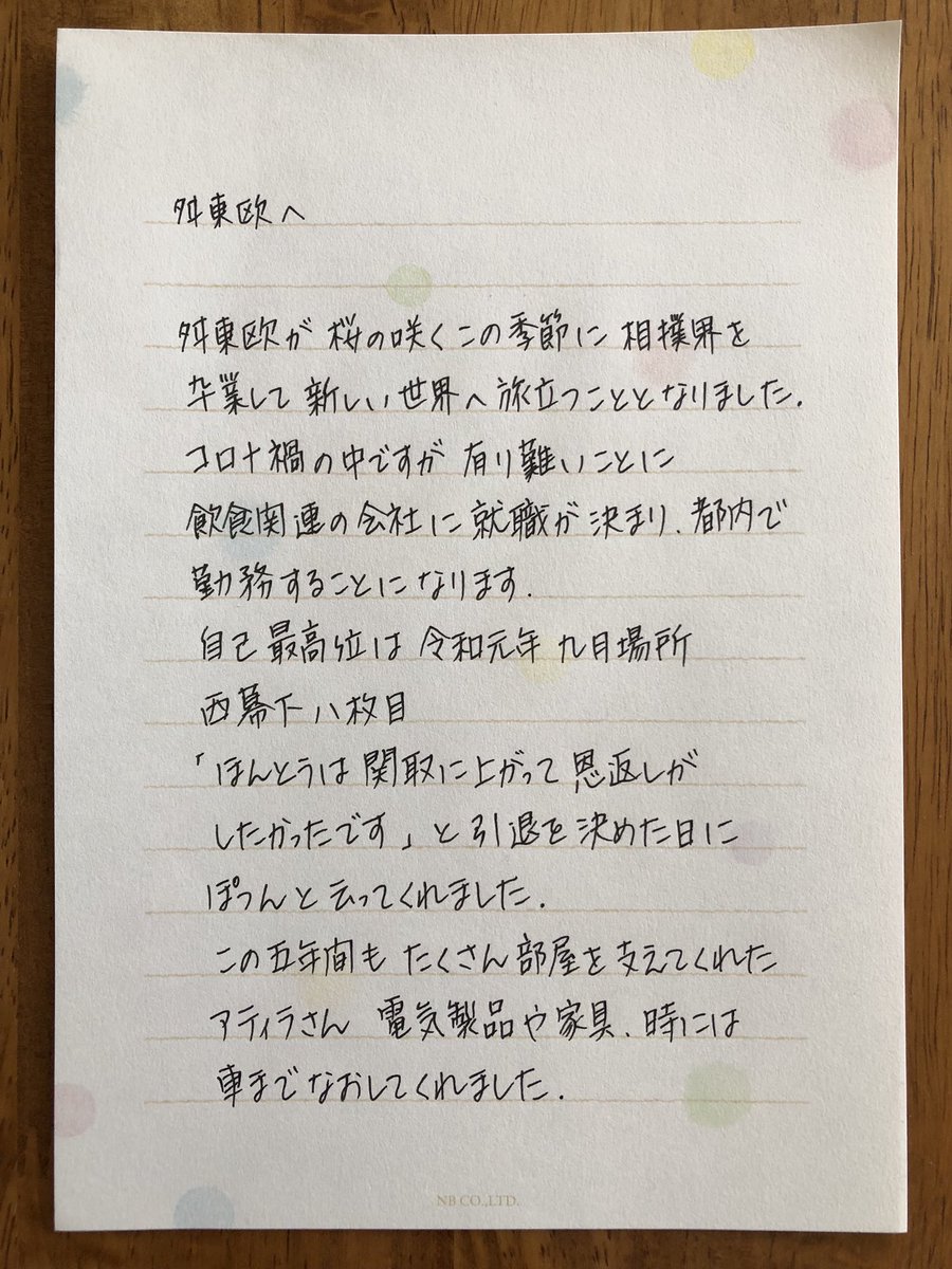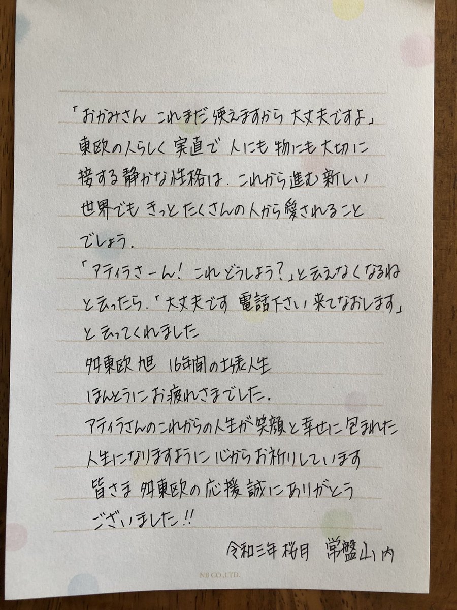 いつも応援ありがとうございます。おかみさんから応援してくださる皆さまへお手紙です。
