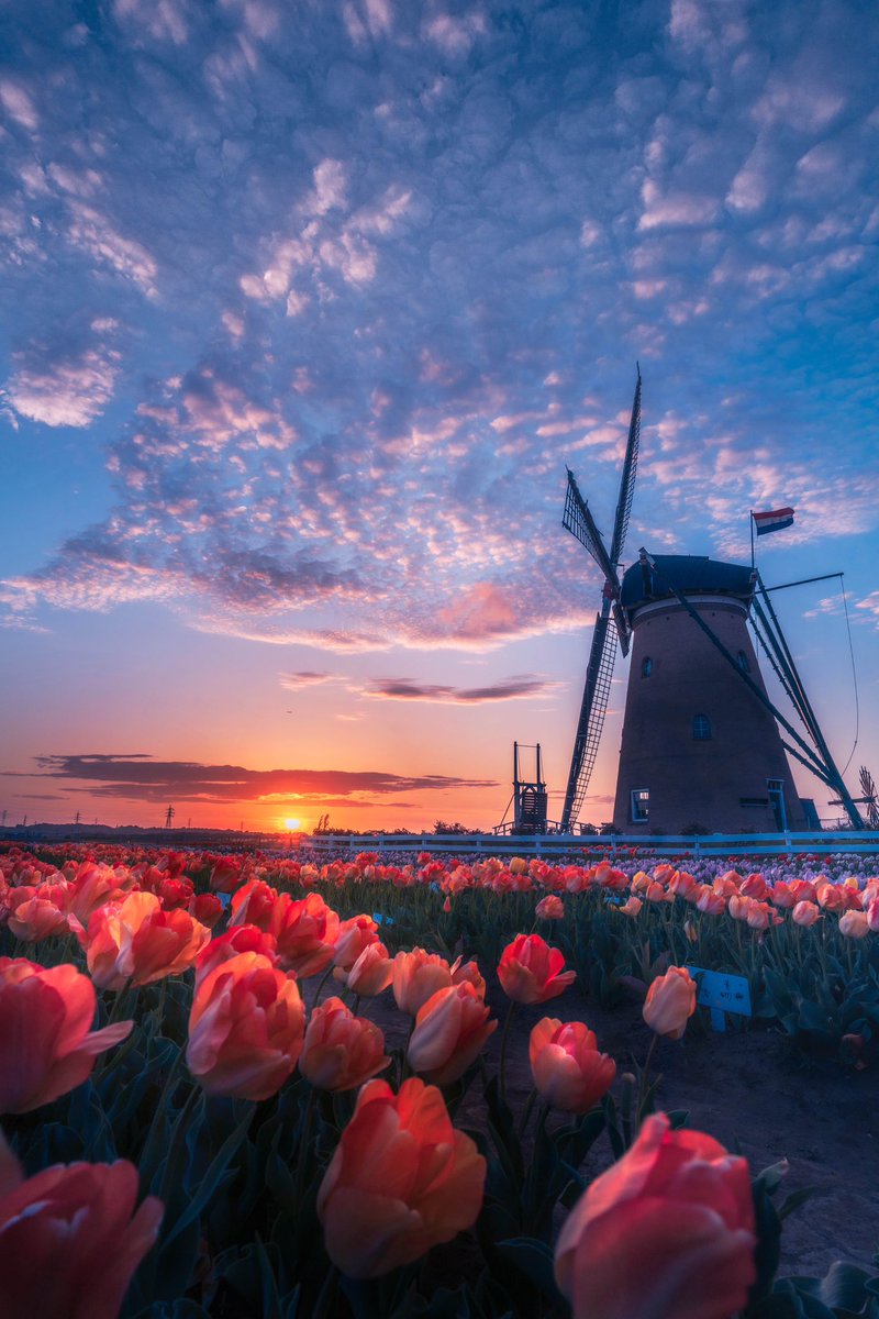 まるでオランダにいるような美しい日本の夕景