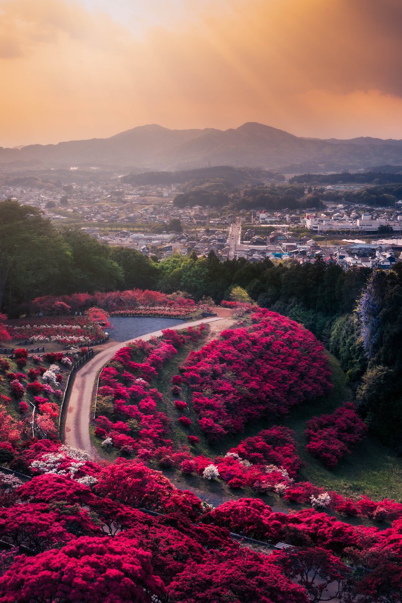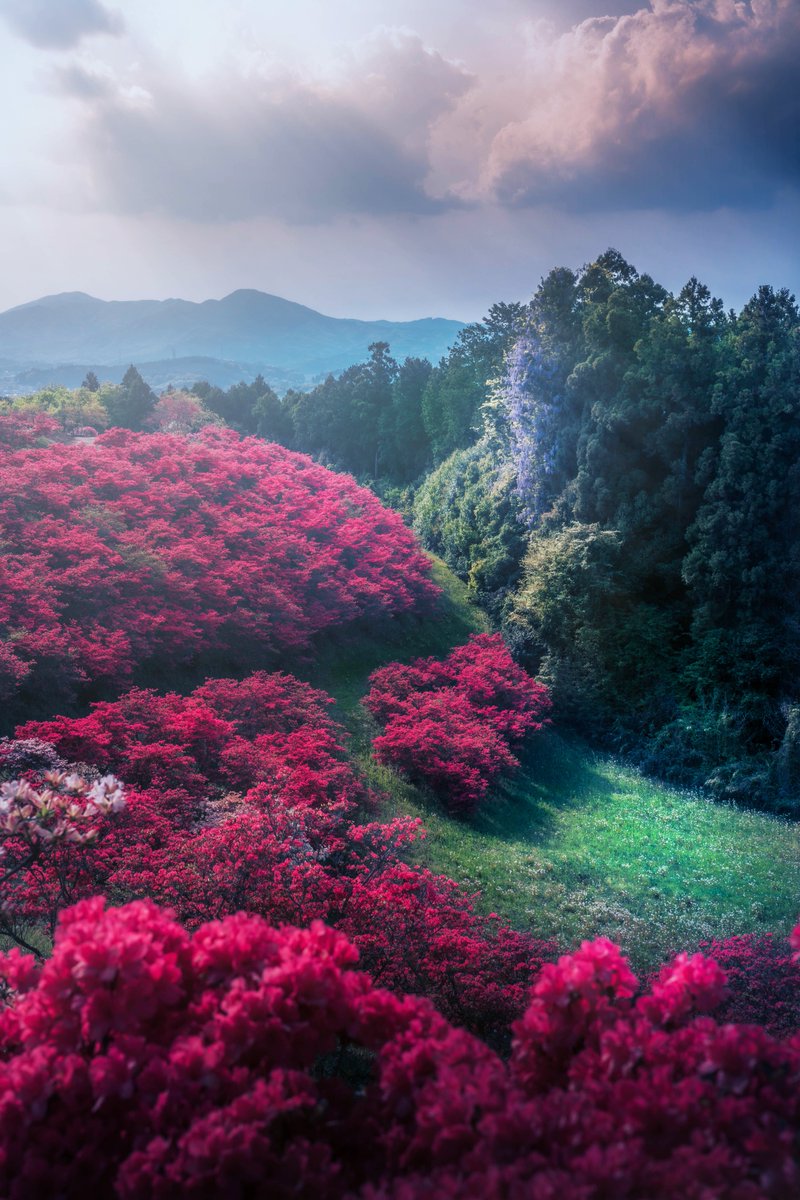 幻想的なつつじの丘が美しい