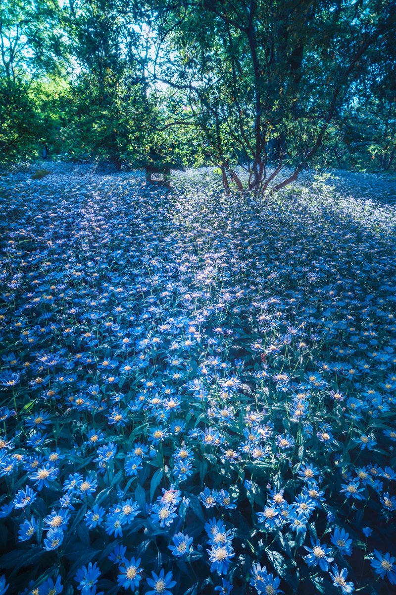 一面に敷き詰められたミヤコワスレの海が幻想的