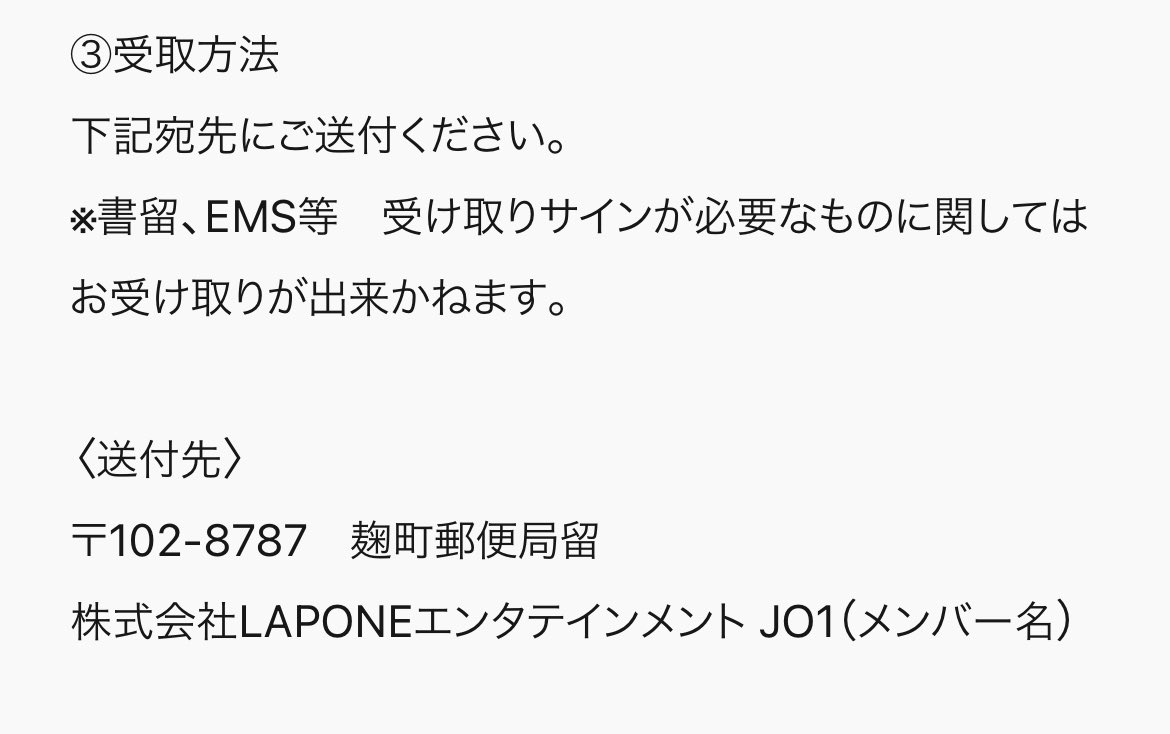 まってJO1のファンレター宛先いつから変わってた?