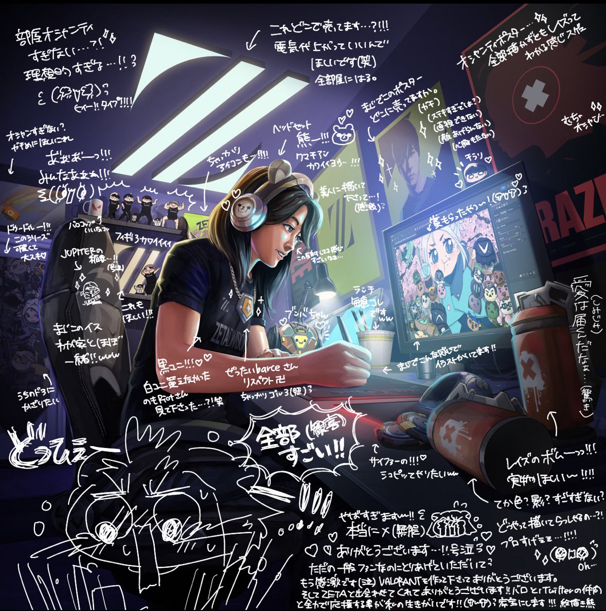 こんなっ、ええぇええええええぇえええすげええええ😭😭😭😭Riotさん、描いてくださった方、ありがとうございます😭いやこれすごいな……?!?!!!!私のイラストフィギュアになってるし、このゴールド3のネックレスはbarceさん(続く↓ twitter.com/riotgames/stat…