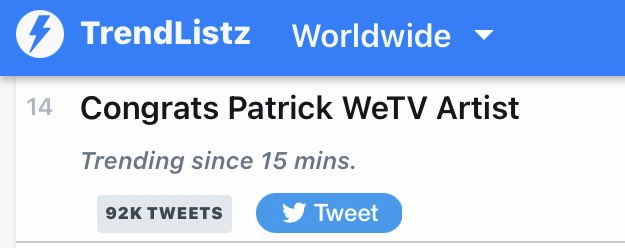Congrats Patrick WeTV Artist #PatrickWeTVArtistOfTheYear