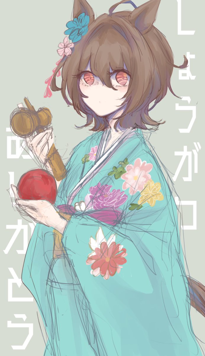とりいそぎ、正月おしとやかけん玉タキオンありがとうっていう、雑描き、です……