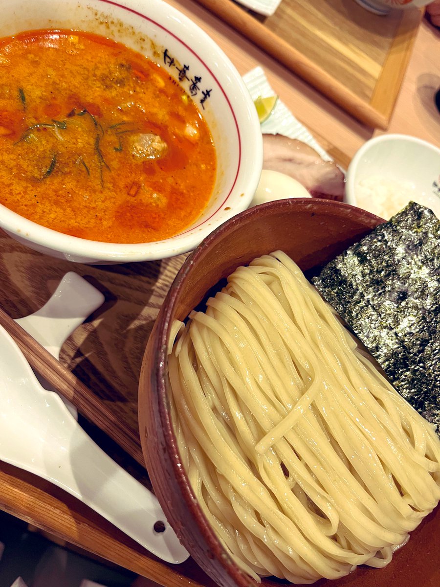 挽肉の旨味が交わった濃厚なつけだれにツヤっとした平打麺が絡んで🙋♂️💯