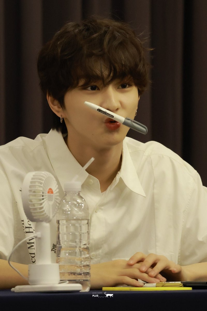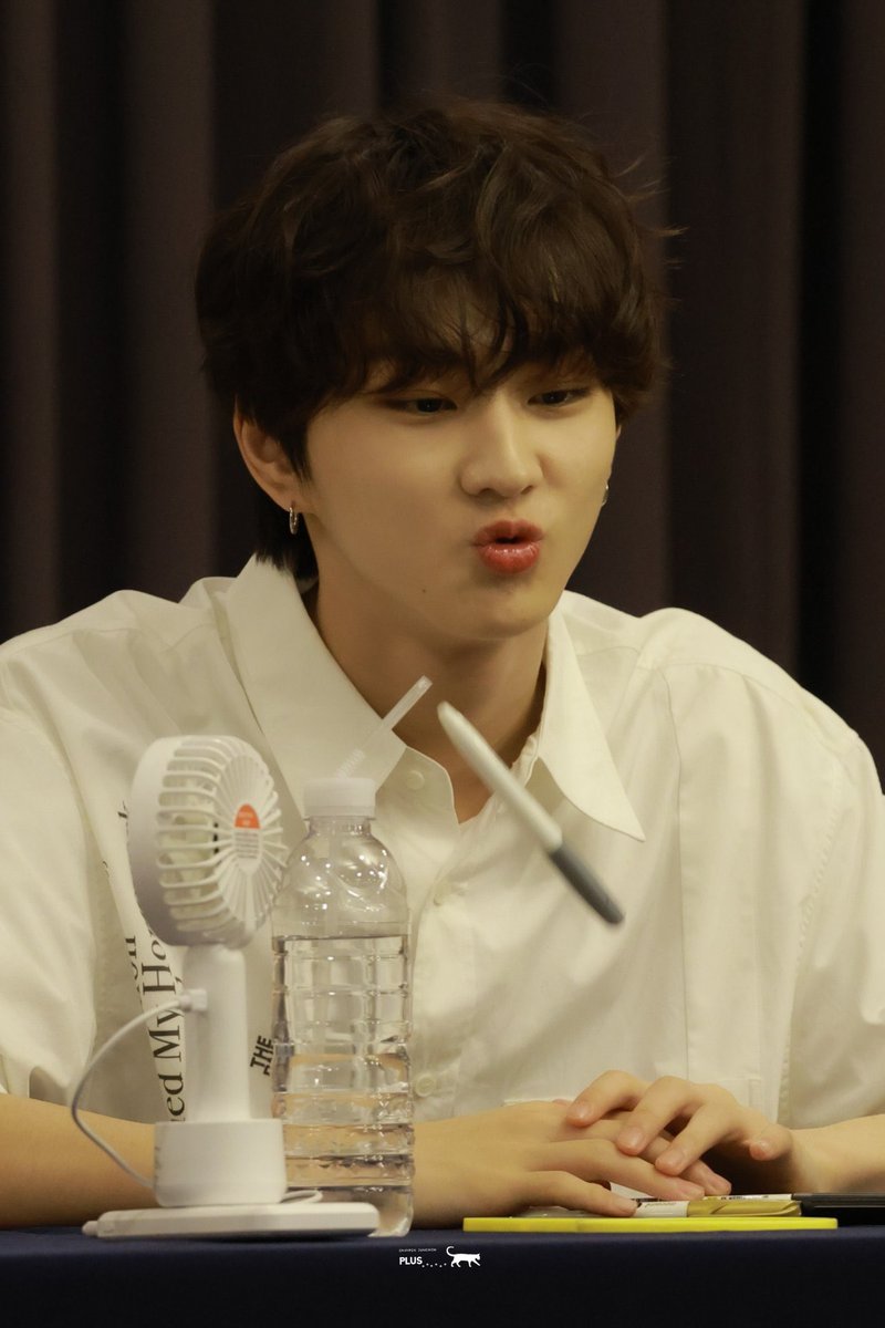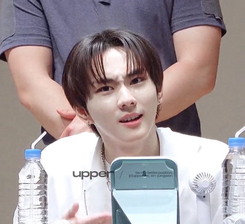 Jungwon showing off his fluffy marshmallow cheekies 🤏twitter.com/mercicheri_/st…