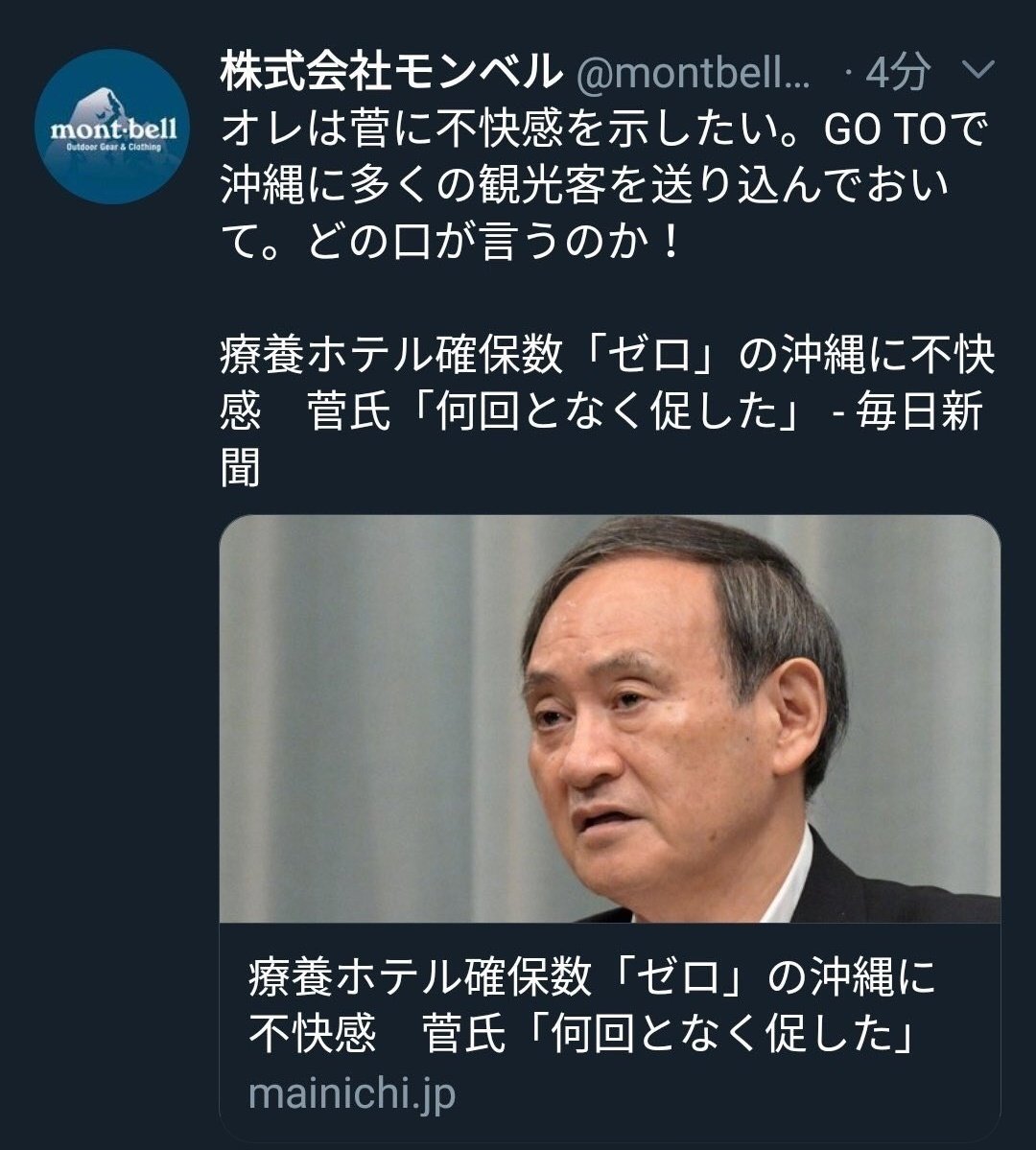 @montbellJP 何の問題も無く、適切なツイートと思います。さすがモンベル。引き続き貴社製品を愛用していく所存です。