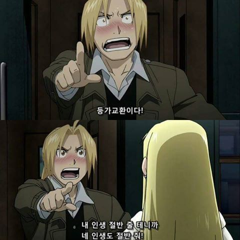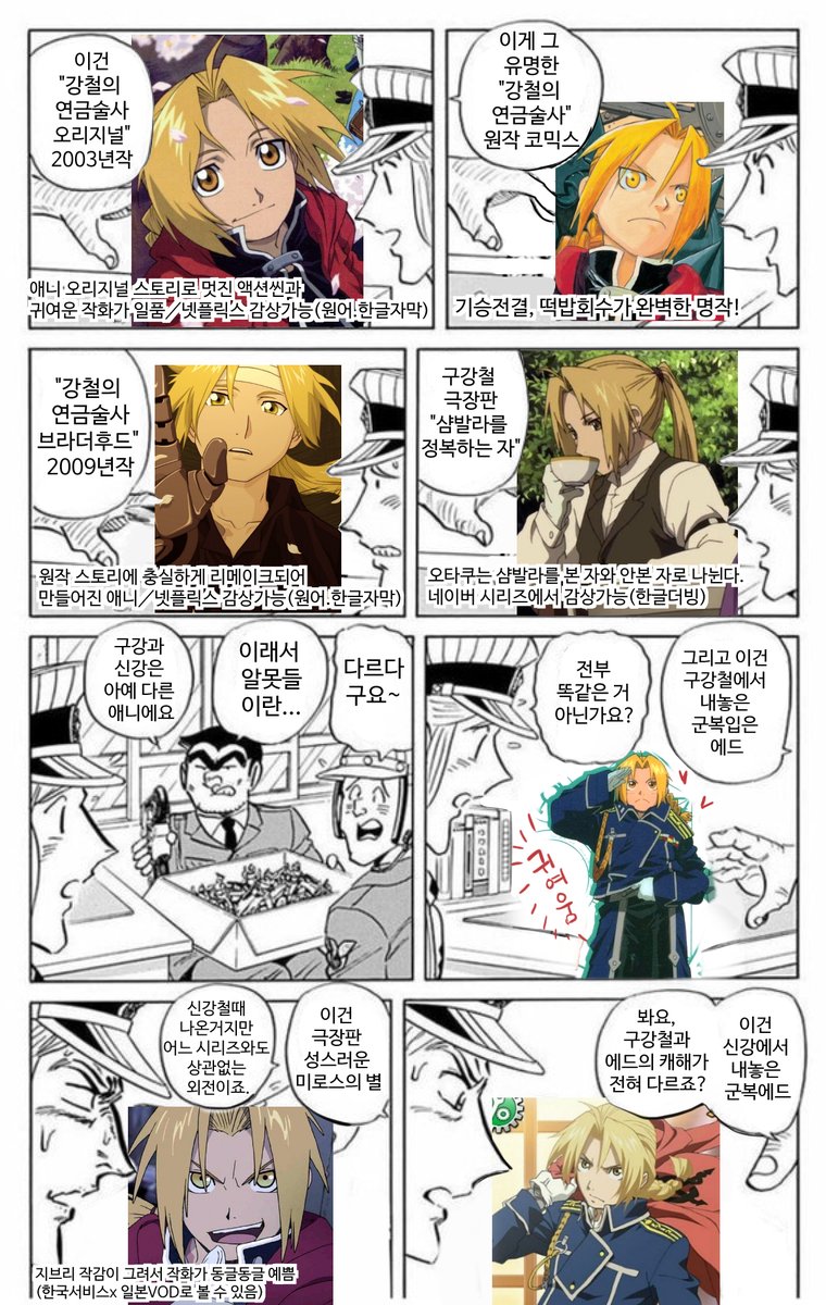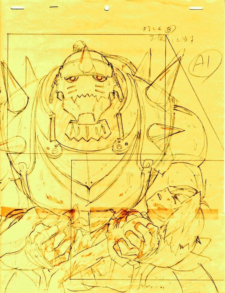 구강철1화는 오프닝이 앞부분이 아닌,엔딩부분에서 에드의 강철로 된 오토메일을 보여주며 자연스럽게「강철의 연금술사」라는 타이틀과 함께 흘러나오는 연출을 했는데 사실 이게 연출이 아니었다고;