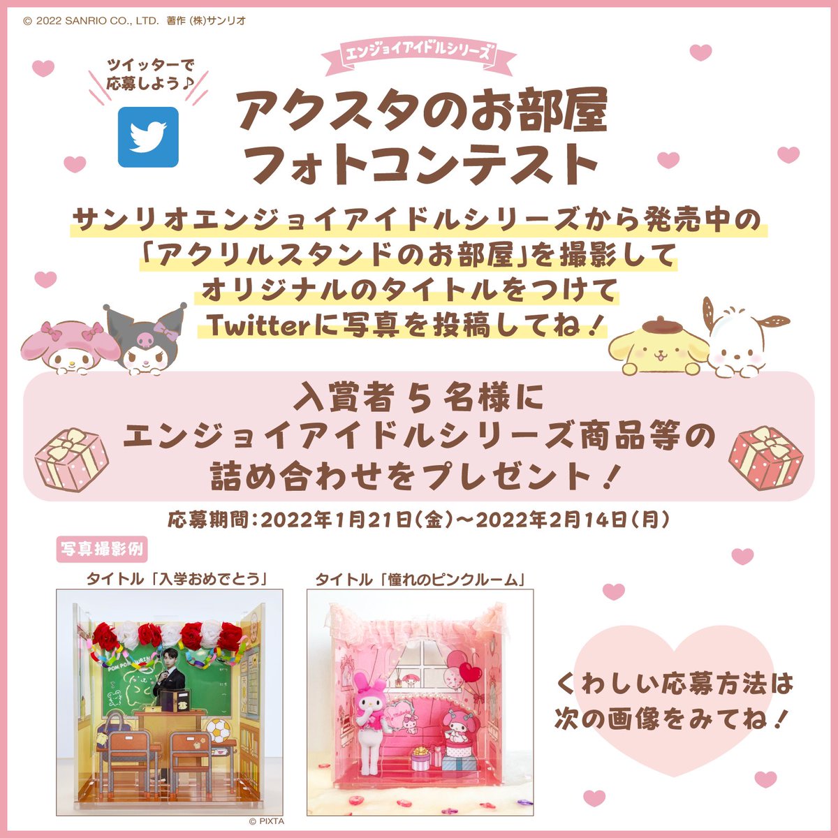 発売中の『アクリルスタンドのお部屋』を楽しく撮影してTwitterで応募してね💕入賞者にはプレゼントがあるよ🎁