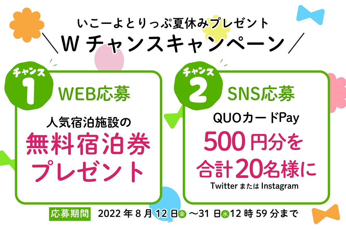🎁さらに人気宿泊施設の無料宿泊券が当たるWチャンスも!詳細は下記を✔