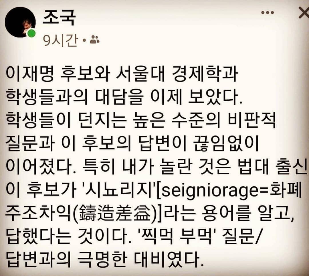 조국 교수가 본 이재명 후보.