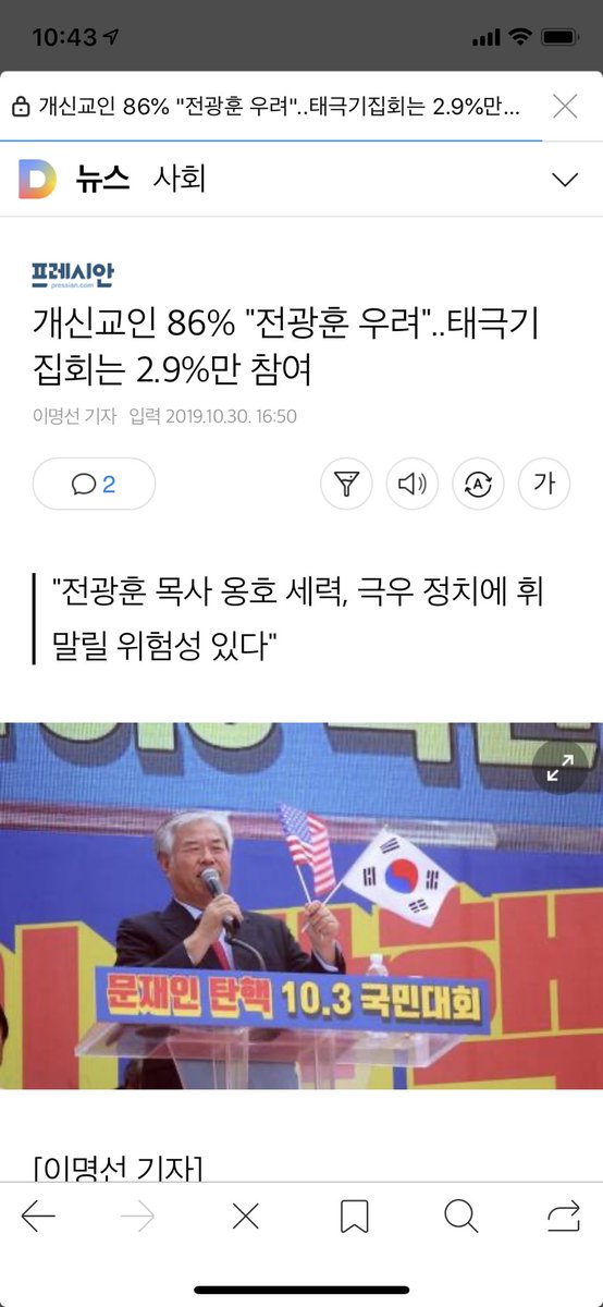 개신교인 86% “전광훈 우려”, 태극기 집회는 2.9%만 참여.
