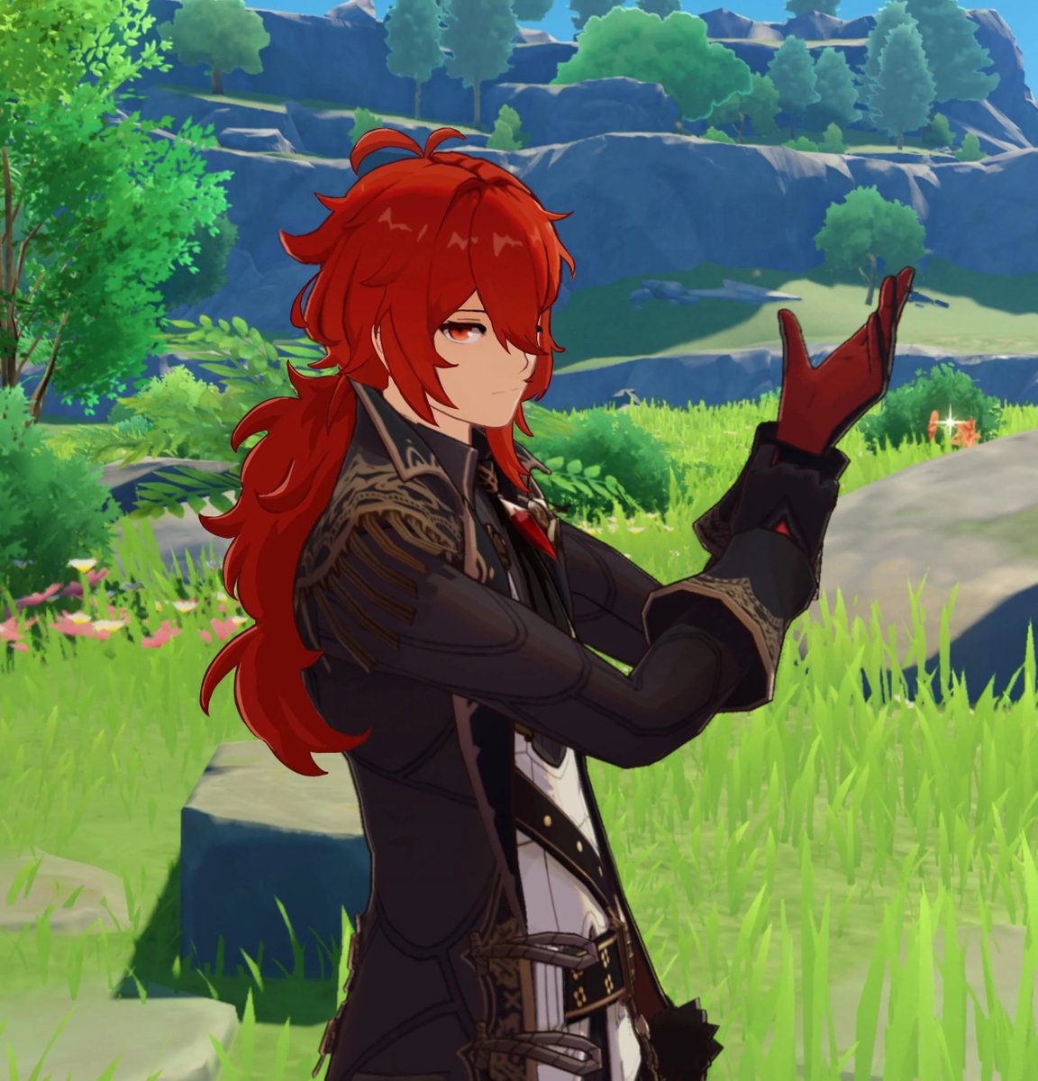 ディルックの髪をイラスト準拠のモフ髪にしてみた #原神