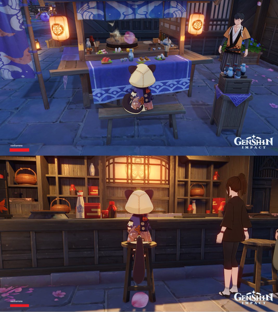 早柚ちゃん。椅子が低いと座る時しっぽをくるんてする #原神