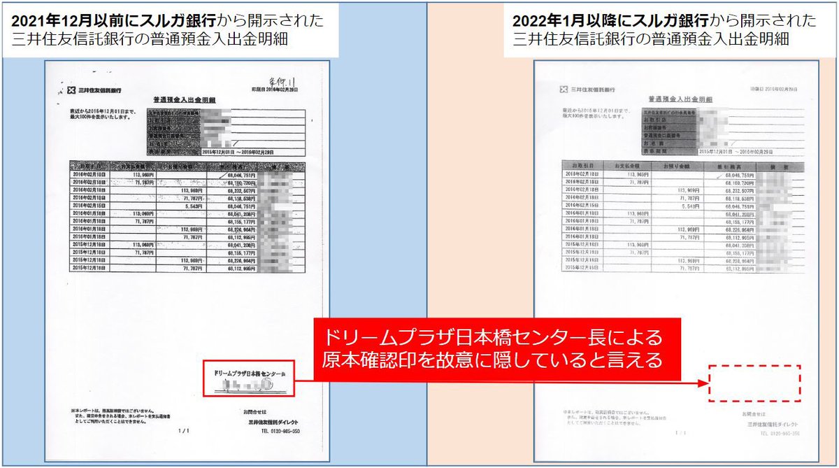 DP日本橋センター長は被害者が保有している @mufgbk_official の預金通帳と表紙から相違していても、「原本の写しに相違ありません」スタンプを押しているようですが