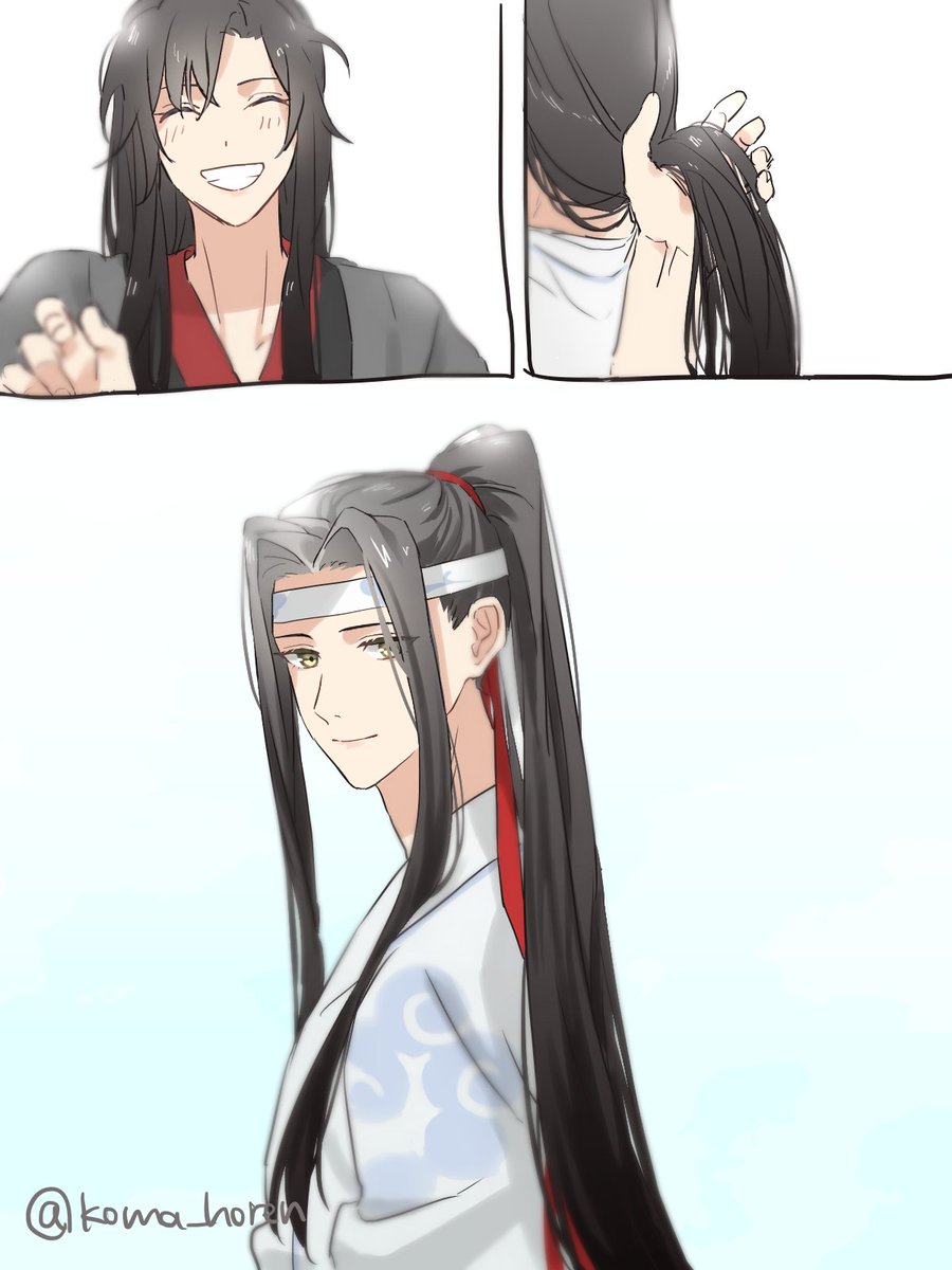 魏嬰の髪紐で藍湛ポニテにしたいなという欲望~~紐の大渋滞 #忘羨