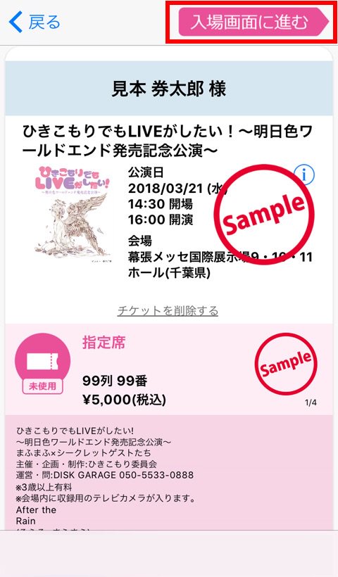 ③「入場画面に進む」ボタンをタップ