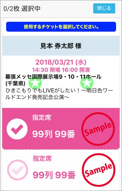 ④使用するチケットを選択し、係員に提示してご入場ください